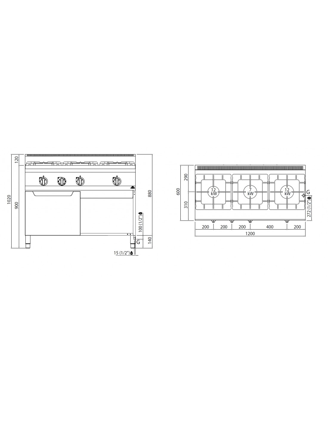 - Potencia quemadores: 7 kW (6.019 kcal/hora) + 12 kW (10.319 kcal/hora)