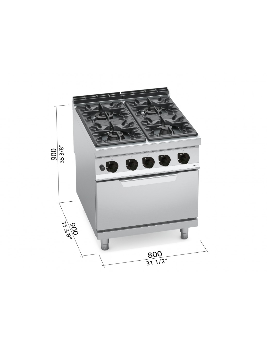 - Potencia fuegos: 1 x 3,5Kw (3.010 kcal/h) + 1 x 7Kw (6.020 kcal/h) + 2 x 12Kw (10.320 kcal/h)
