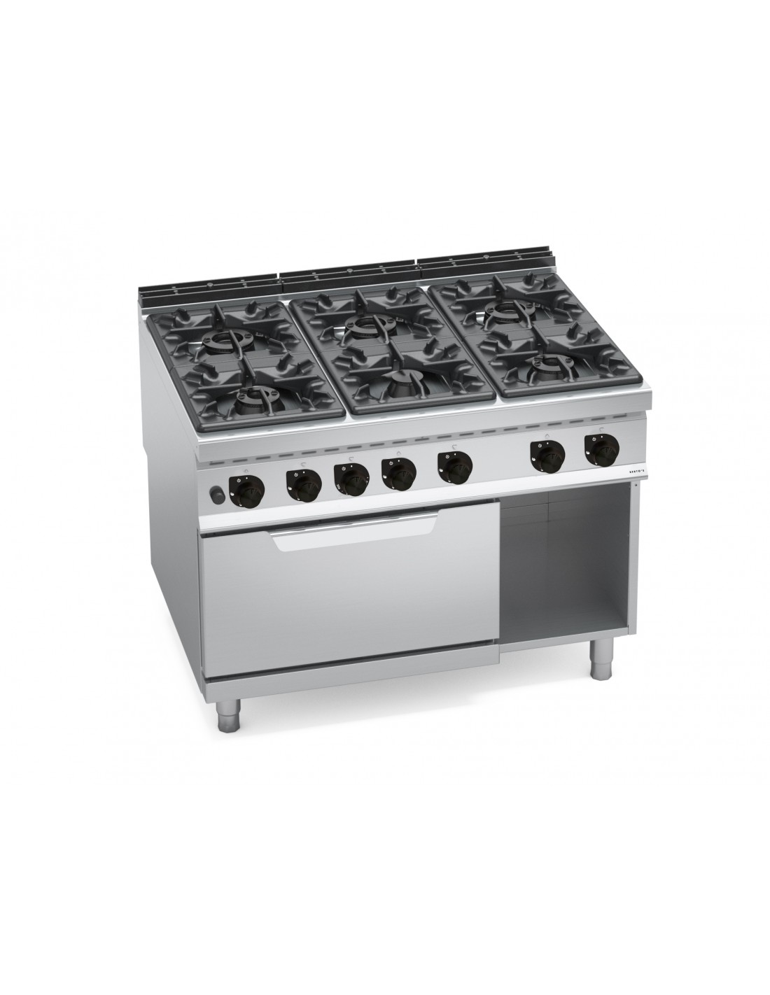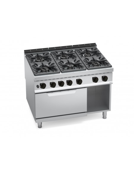 - Potencia fuegos: 1 x 3,5Kw (3.010 kcal/h) + 2 x 7Kw (6.020 kcal/h) + 3 x 12Kw (10.320 kcal/h)