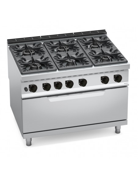 - Potencia fuegos: 1 x 3,5Kw (3.010 kcal/h) + 2 x 7Kw (6.020 kcal/h) + 3 x 12Kw (10.320 kcal/h)
