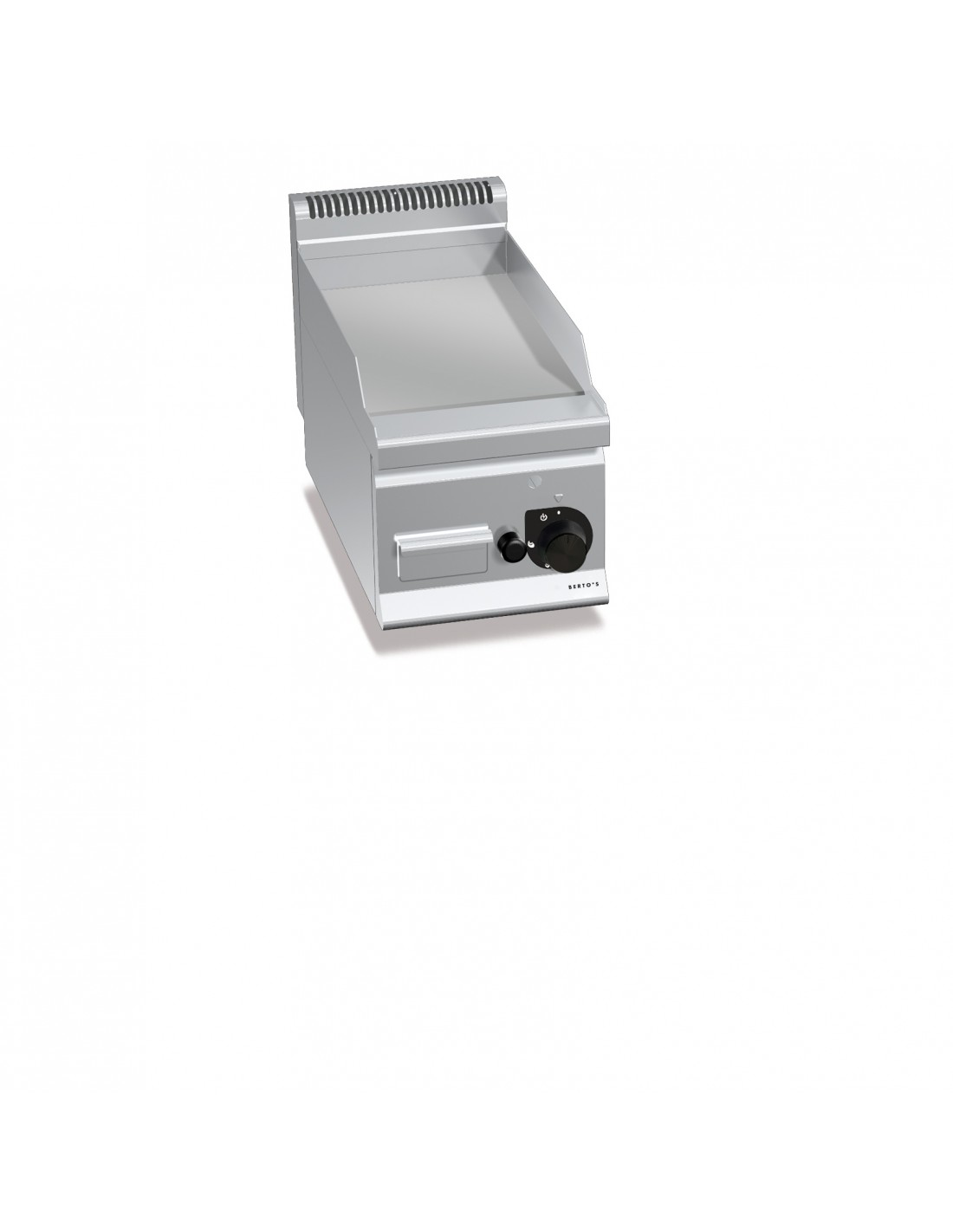- Plancha lisa con revestimiento de cromo duro, con protección antisalpicaduras en el borde