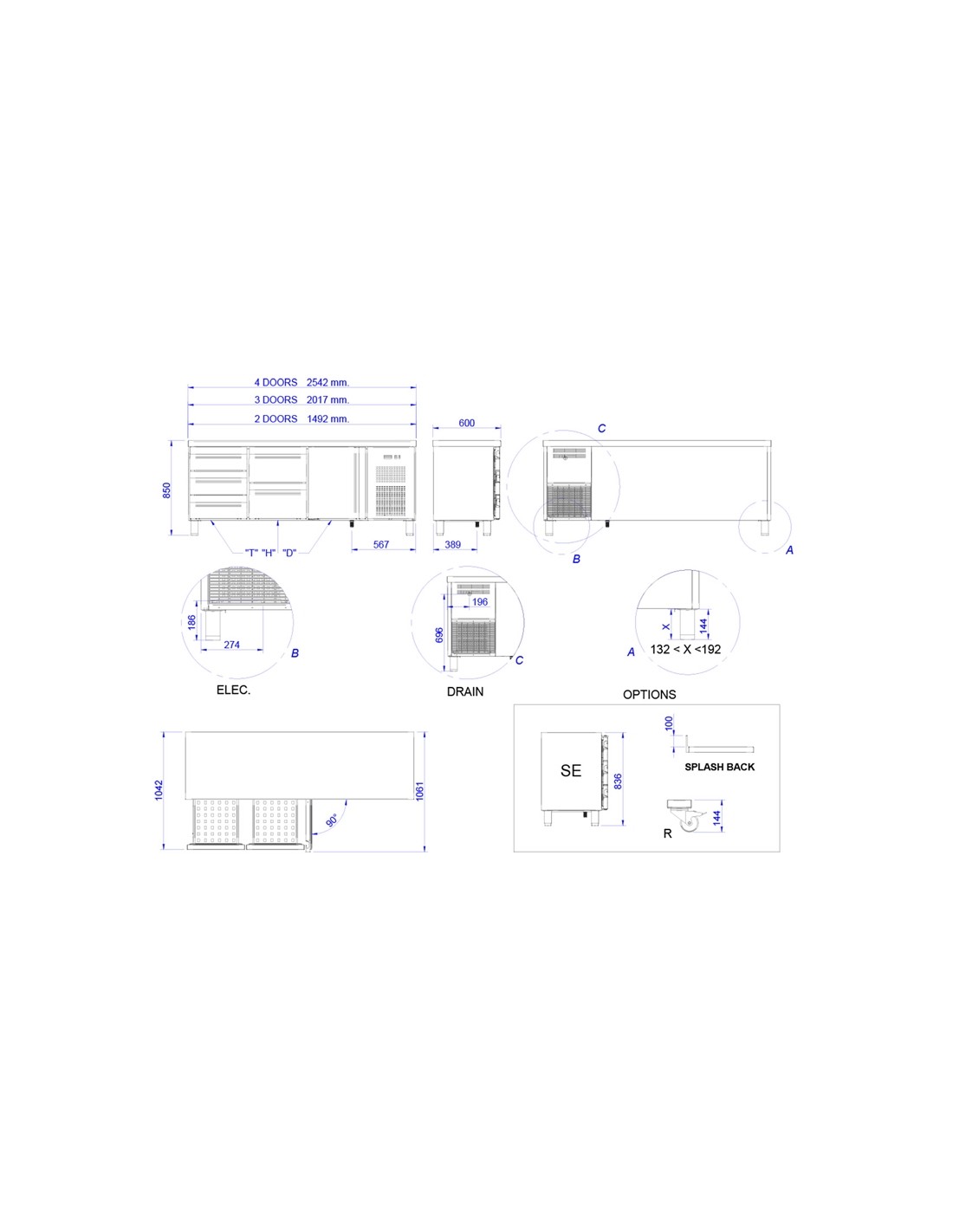 - Dimensiones: 2542x600x850mm
