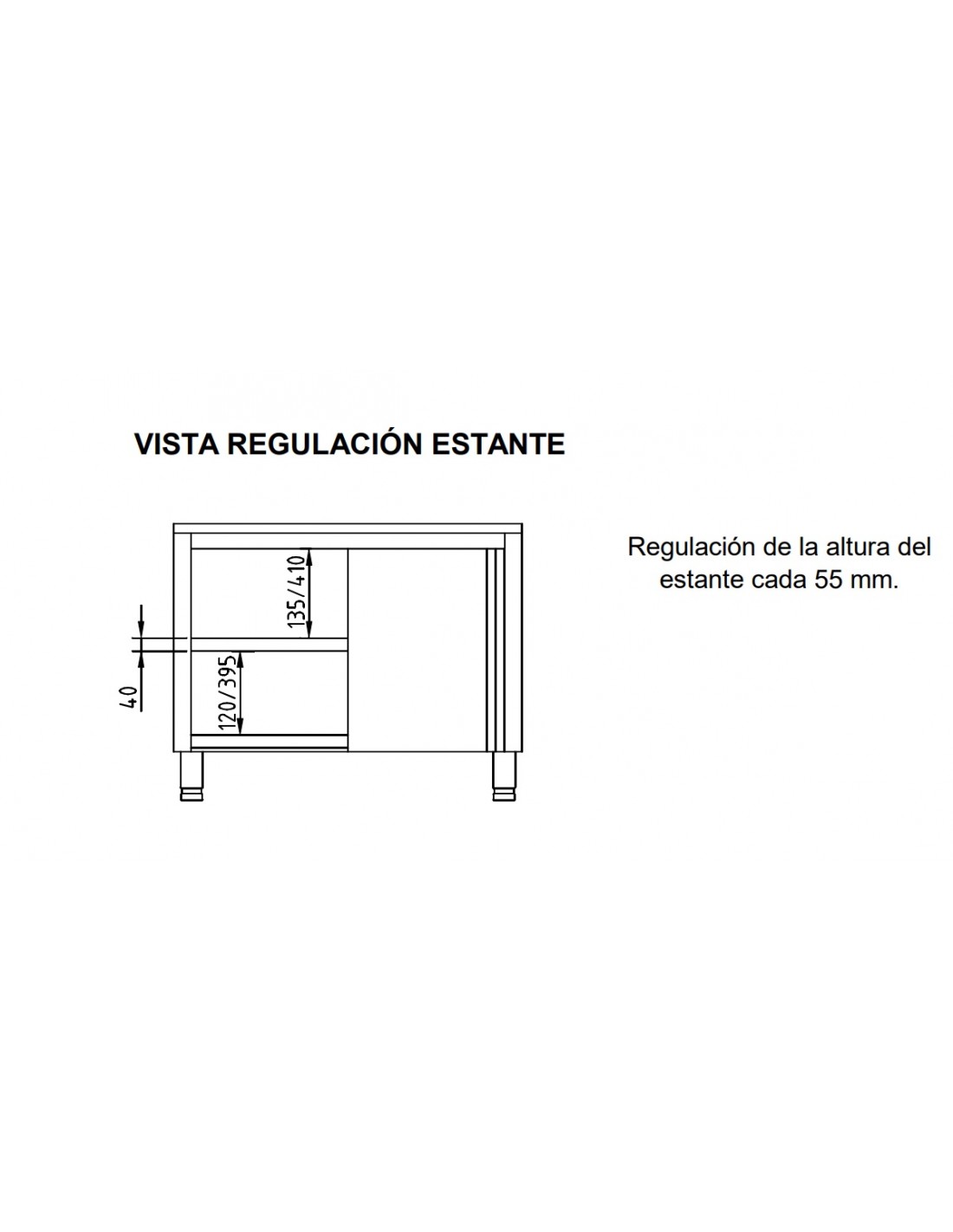- Estante regulable en altura cada 55mm