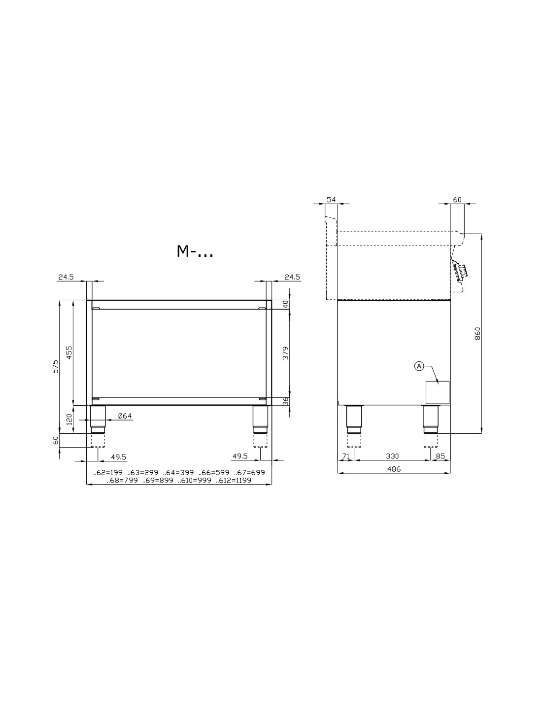 - Estante regulable en altura cada 55mm
