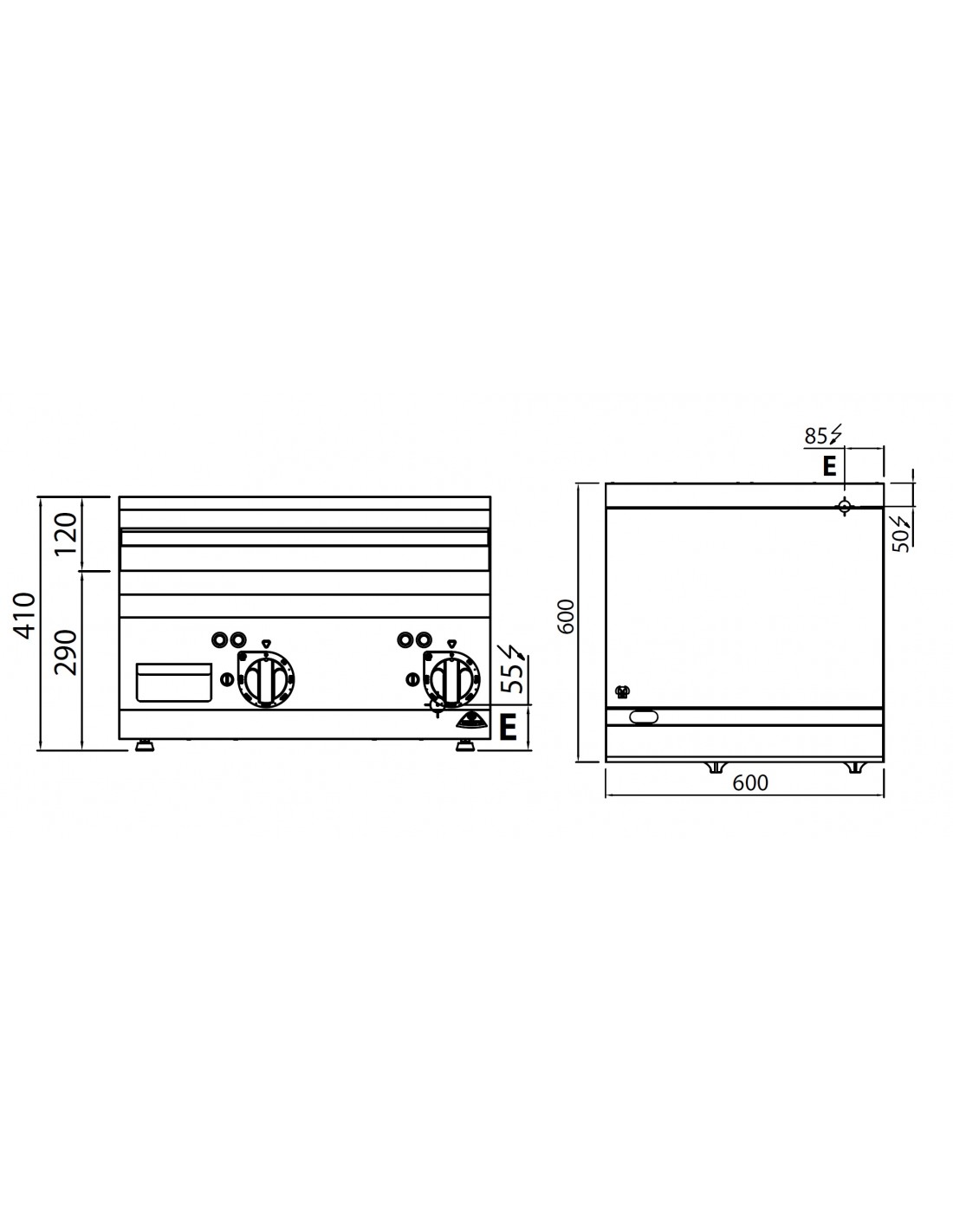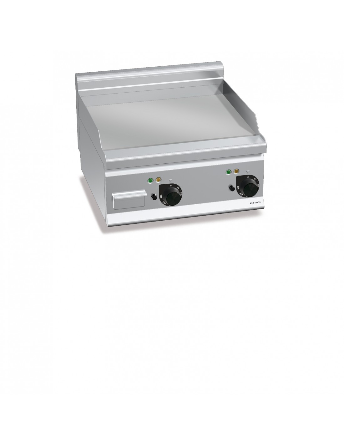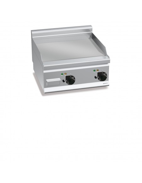 - Plancha lisa de acero satinado con protección antisalpicaduras en el borde